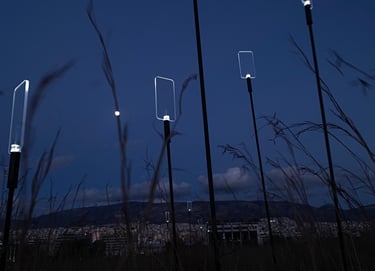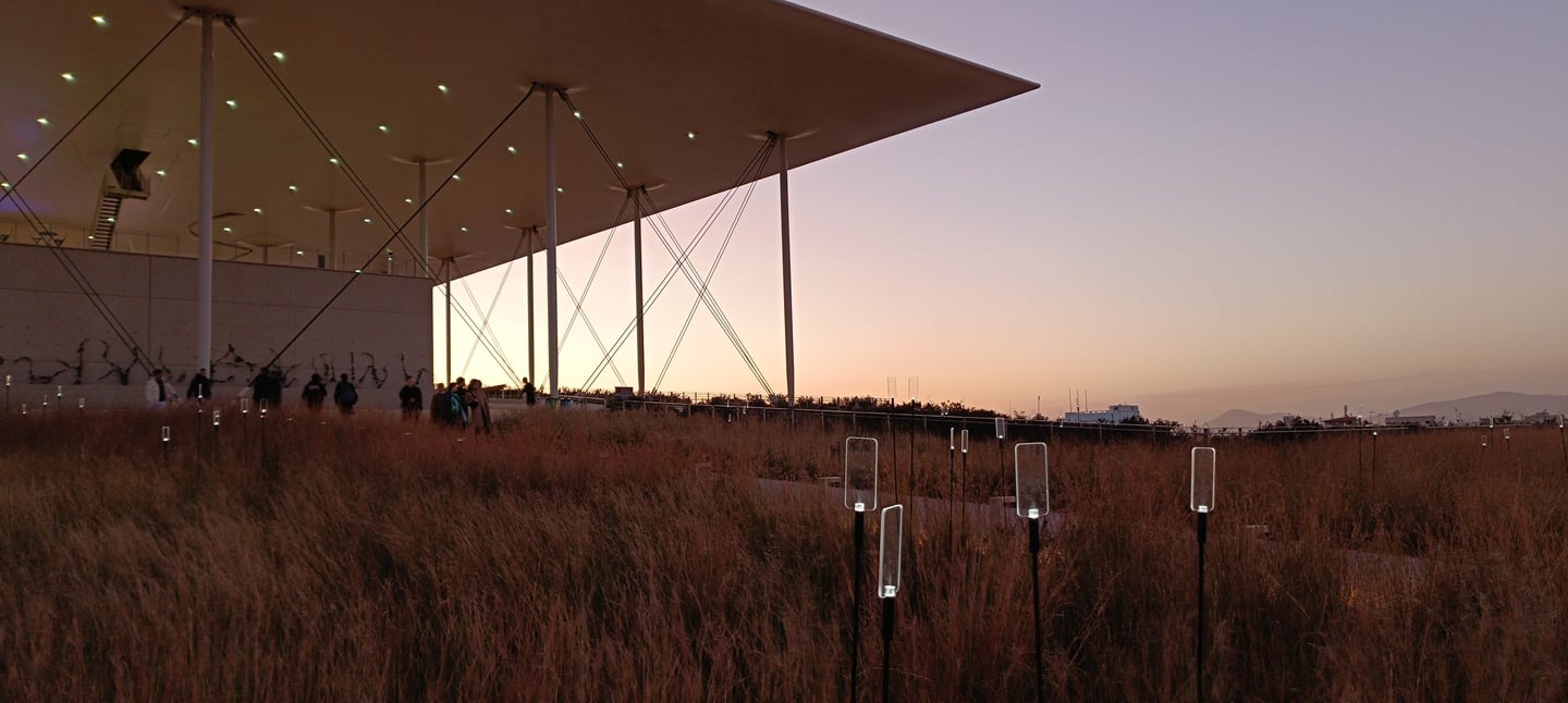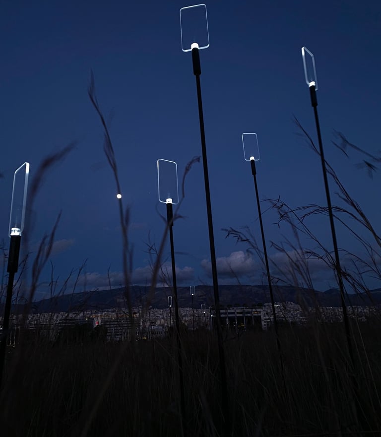 Luminous Dreams won the open call for the annual light festival of the SNFCF and was able to realize its project proposal. The inspiration for the luminous landscape created by Petros Dermatas came from the image of lit lighters raised in the hands of audiences at concerts of the past, as a sign of participation and interaction.
