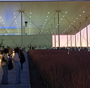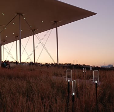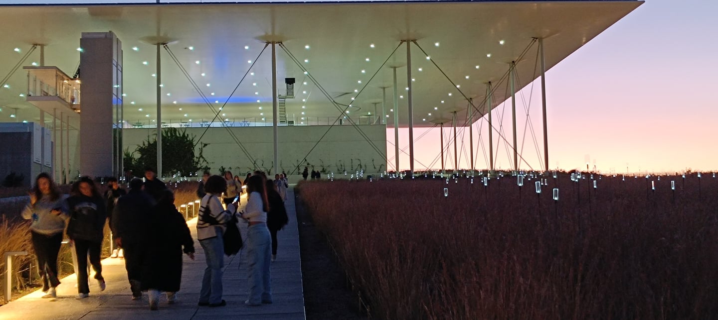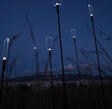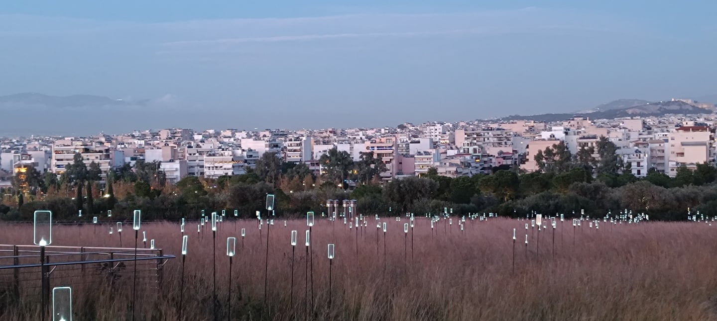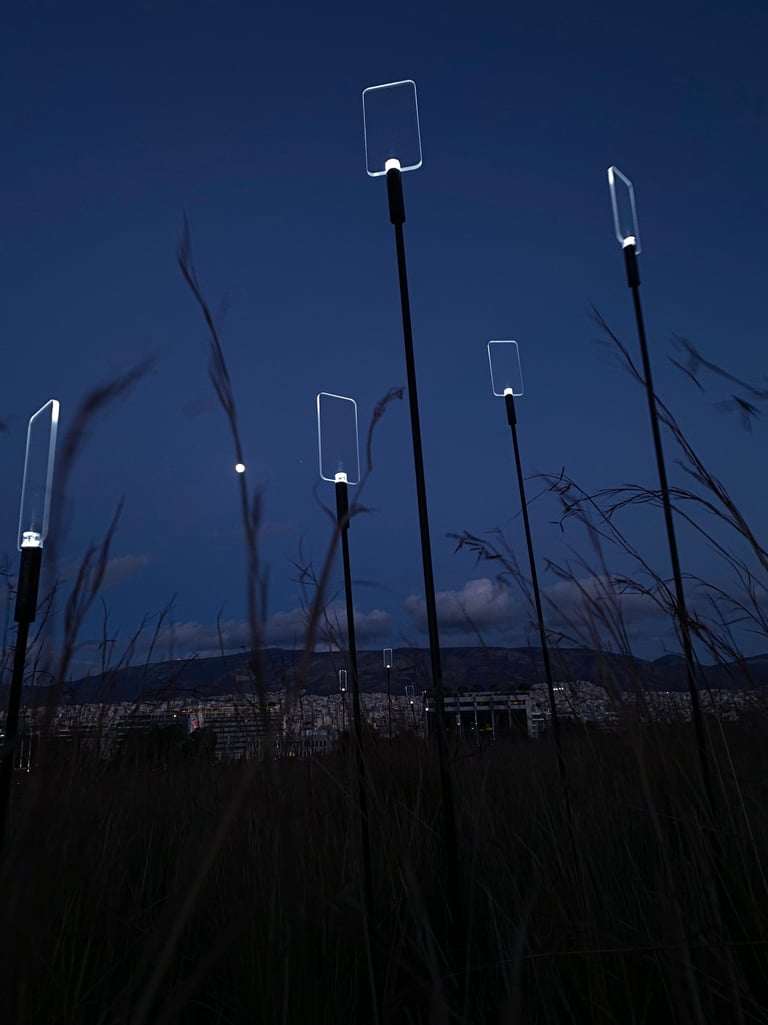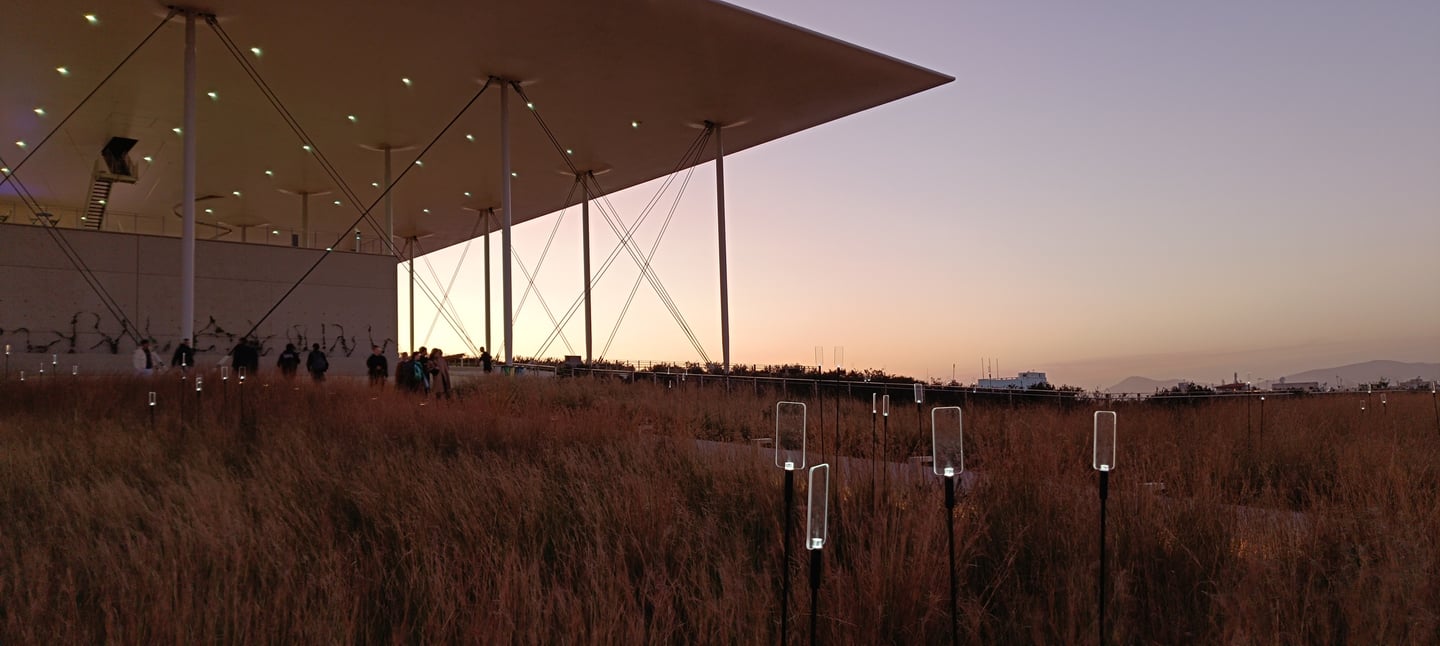 The planted roofs of the SNFCC situated above the Greek National Library and the Greek National Opera was the designated space for the open call of the annual Light Installation Festival at the Stavros Niarchos Park. luminous dreams won the competition and was able to realize its project proposal. The theme of the open call was: Gatherings: People meeting.
